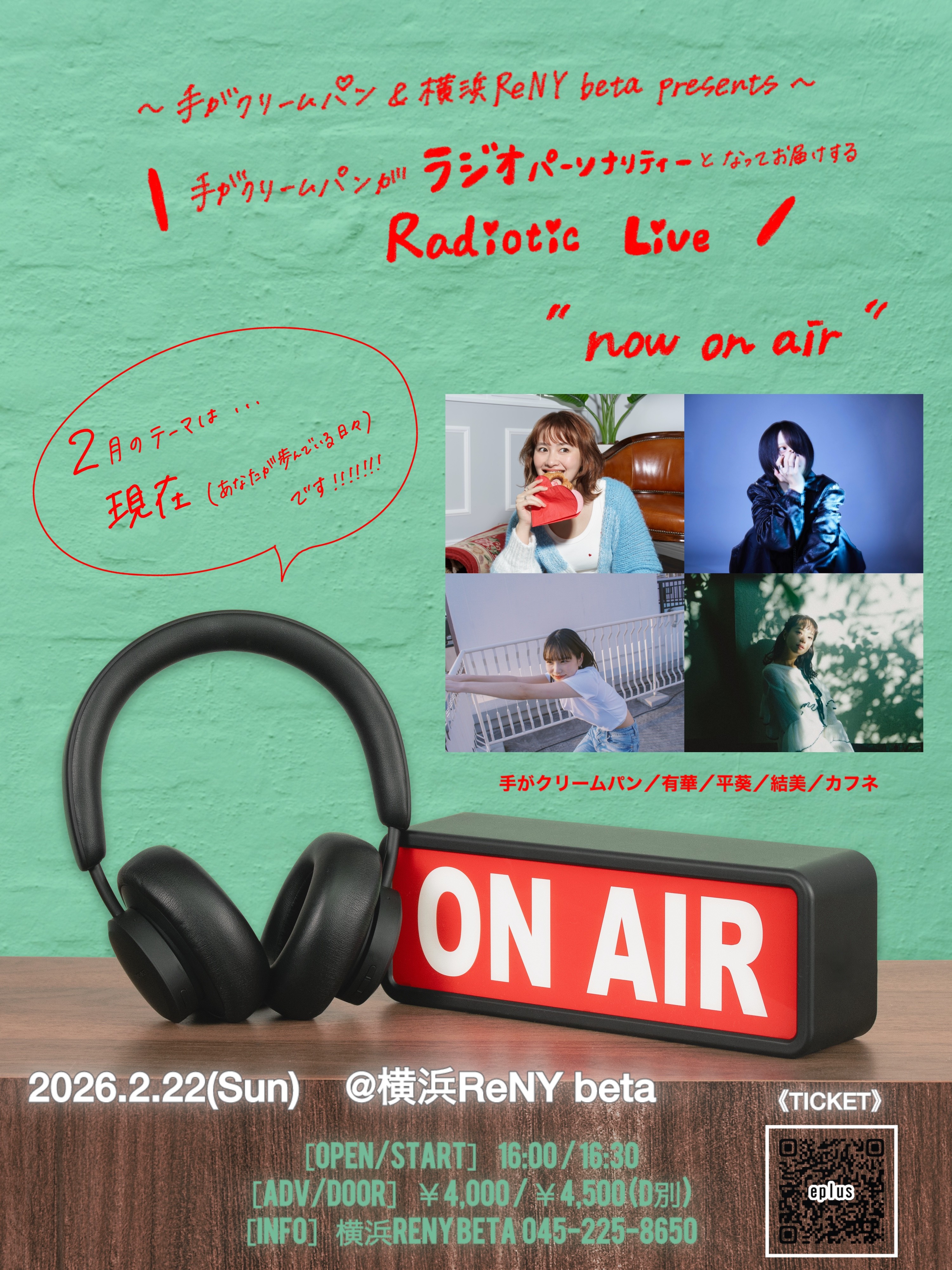 📢2/22(日)手がクリームパン&横浜ReNY beta presents 「now on air」vol.5